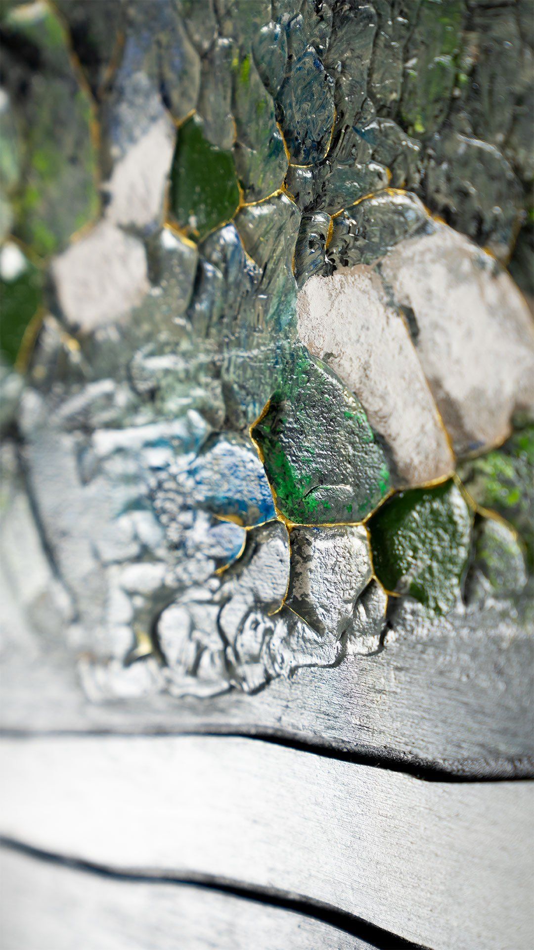 In Woodworks , wood is the basic raw material and treated in different ways. With milling work as well as by applying acrylic compounds, a third dimension is created. Pigments and acrylic compounds are applied with a palette knife. For this kind of work, wood proved to be the ideal basis.