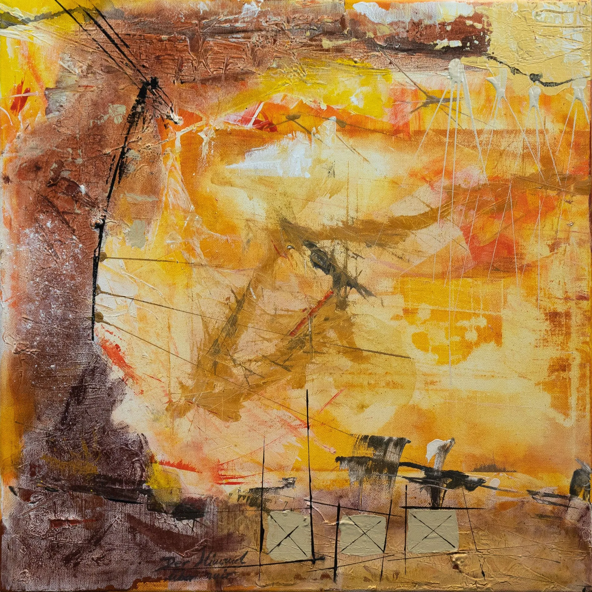 The canvas works are often composed with acrylic compounds and pigments. Sometimes up to ten layers accrue during that process which later on makes it almost impossible to identify the former work steps. The beholder can only perceive it – a depth effect which transforms observing into an expedition.