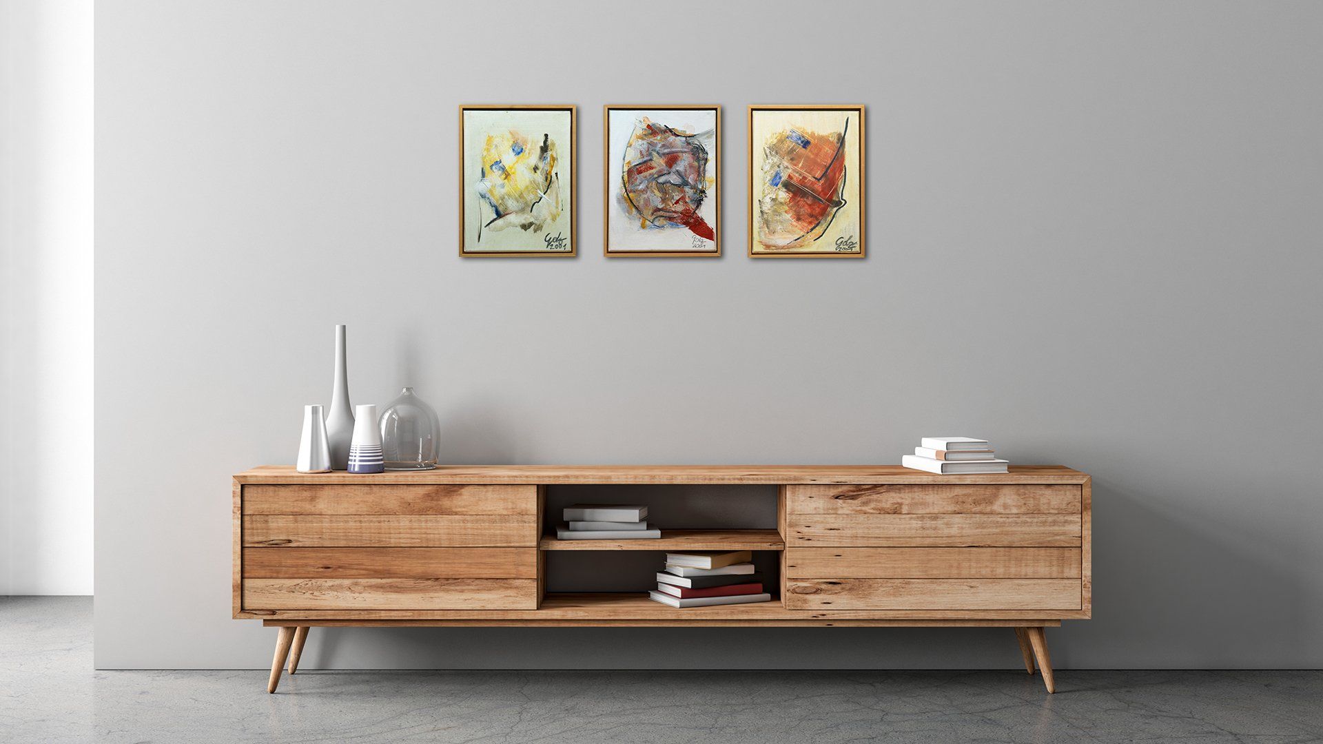 Canvas works show various artworks up to 3 sqm size, mostly on thick frames.