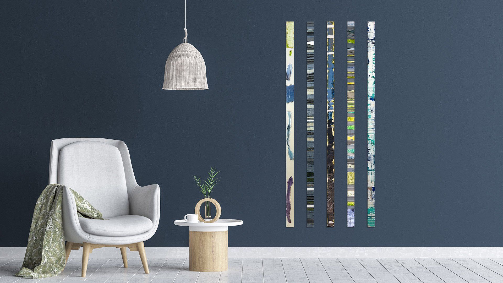 The yardstick – understood as a drawing device as well as a measuring scale – is given a symbolic value. The series “Yardsticks” poses the question of standardization and are calibrated uniformly in a new and striking way. The calibration marks merge via smooth transitions and begin to dissolve. Contrasting plains define borders – and yet don’t. Each unique artwork is an eye catcher – and it´s vertical hanging capability accentuates even small wall areas. The measurement most commonly used is 180x7cm.